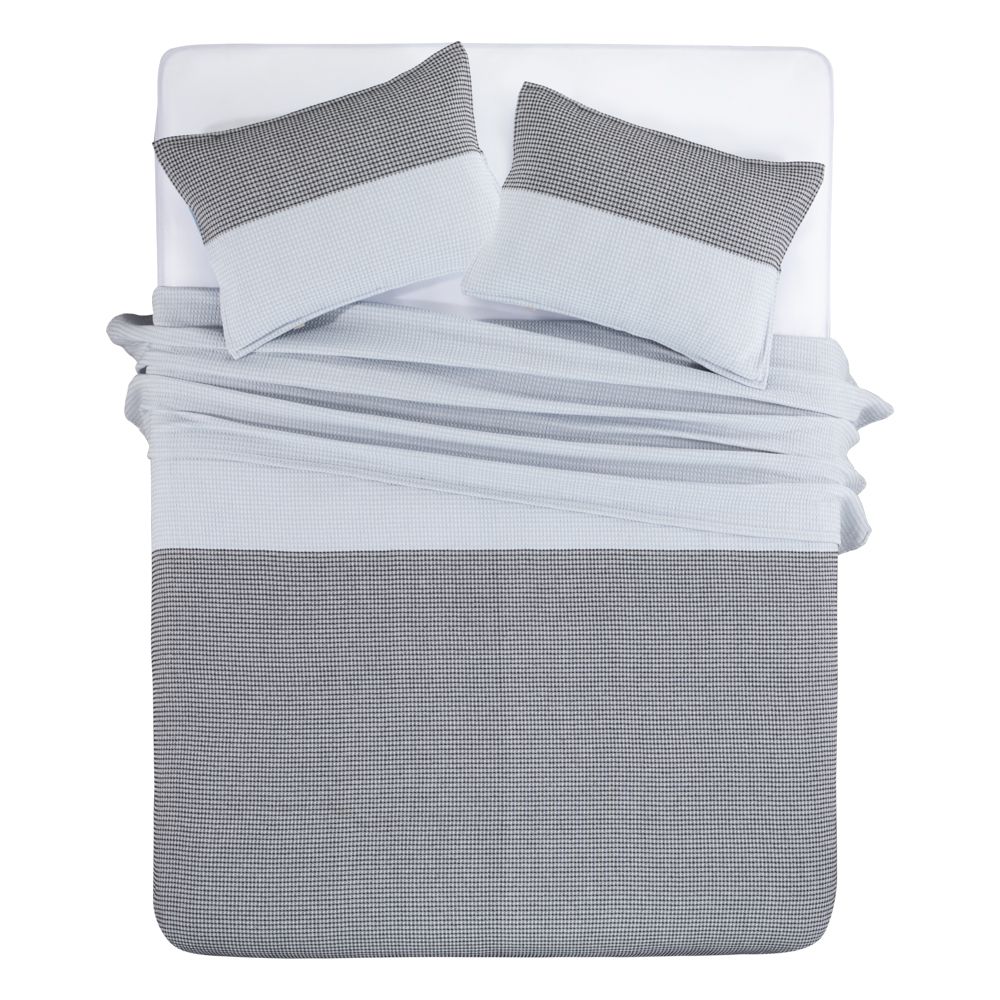 Colcha de algodón tejeduría con diseño escocés o listado. Este producto no incluye fundas. Disponible en tres medidas (Individual, Queen, King). Tiene un tamaño de 220x240 cm.