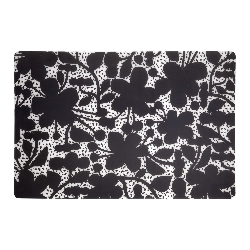 Individual rectangular transparente de plástico con diseño. Tiene un tamaño de 43x28.5 cm