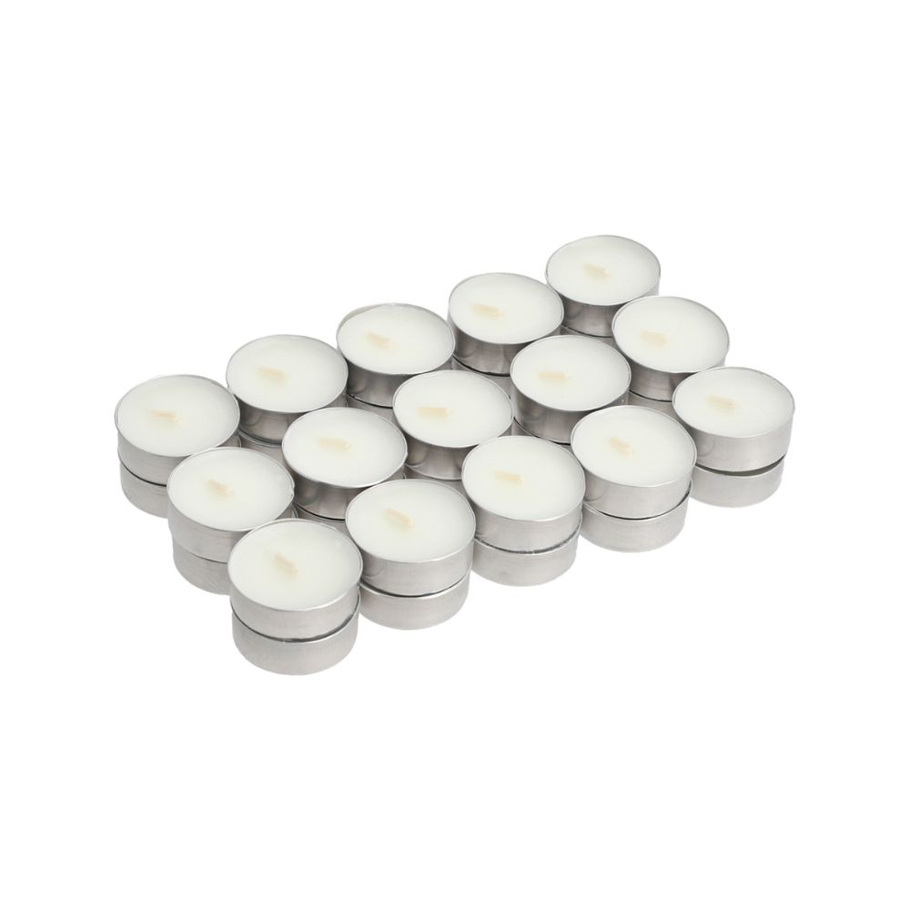 Set de 30 Velas tealight blancas sin aroma, con un tiempo de duración de hasta 4 horas c/u.No dejar prendidas sin supervisión.